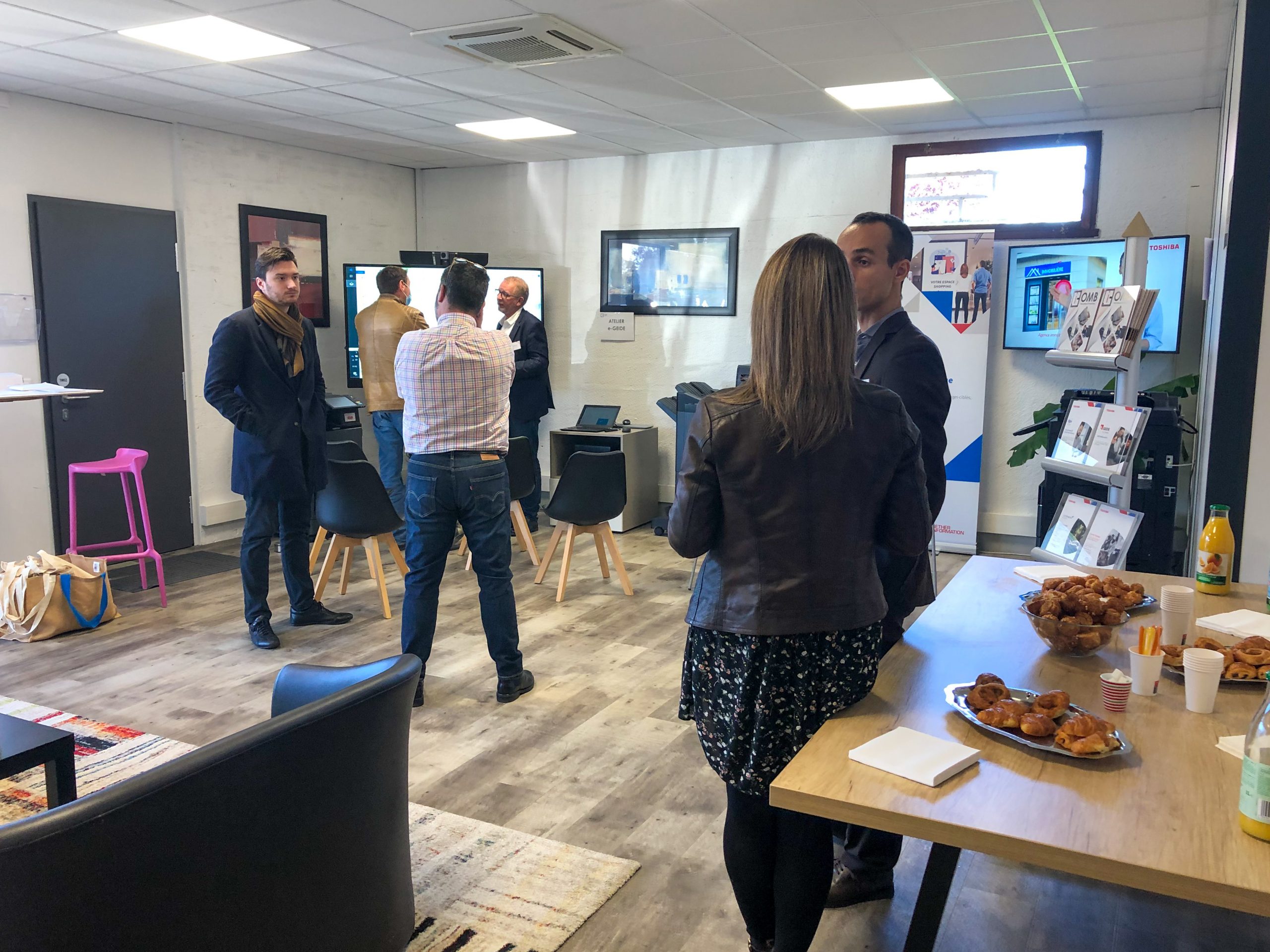 L’objectif de cette journée du numérique était de faire découvrir à nos invités nos solutions spécialement conçues pour l’optimisation des processus internes et le développement des entreprises. Le pari est réussi grâce à nos conférences et ateliers animés par nos partenaires Toshiba et DPII. Les conférences ont permis de présenter et d’expliquer le fonctionnement de nos solutions. Les ateliers quant à eux, ont permis de les présenter plus en détail grâce aux démonstrations. C’est également à ce moment que nous avons pu répondre aux interrogations de chacun de manière personnalisée.